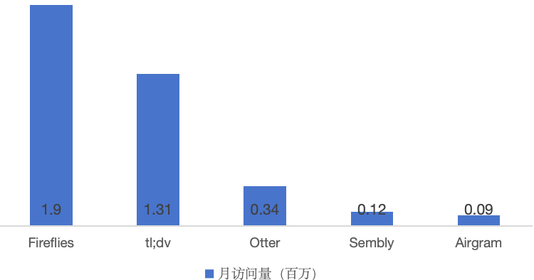 圖3 主流AI會(huì)議助手第三方應(yīng)用月訪問(wèn)量2