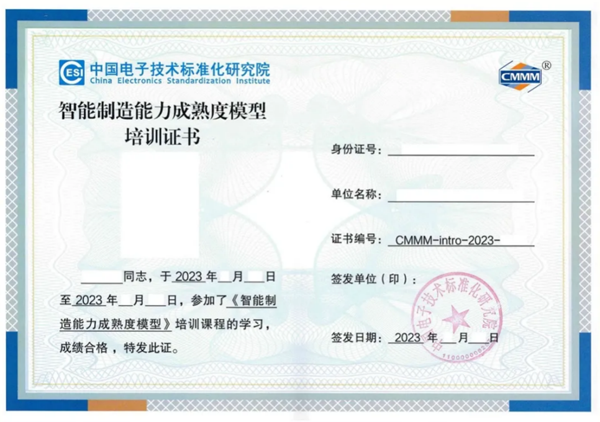 3.考試結業:采用閉卷考試形式,學員培訓完成且通過考試后,可獲得由中國電子技術標準研究院頒發的《智能制造能力成熟度模型培訓證書》。