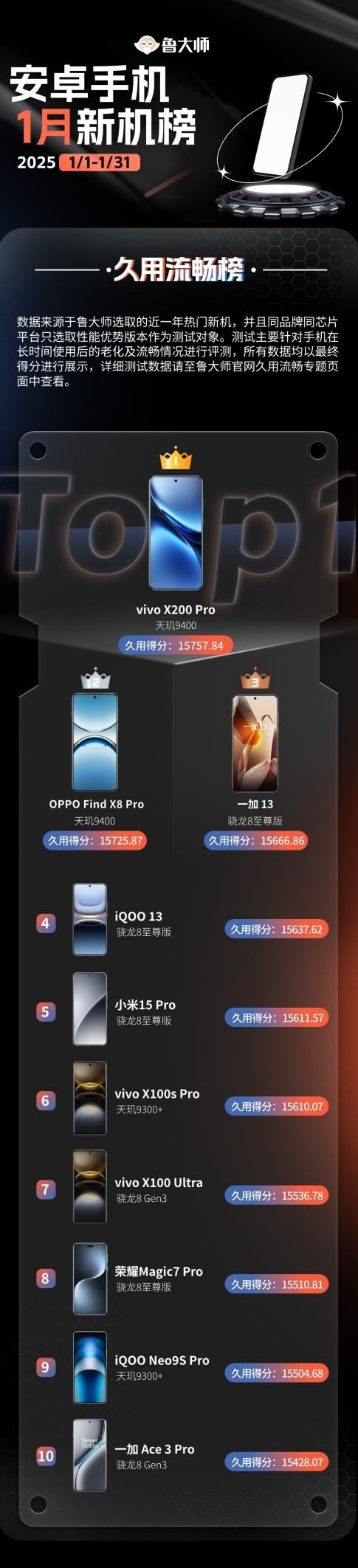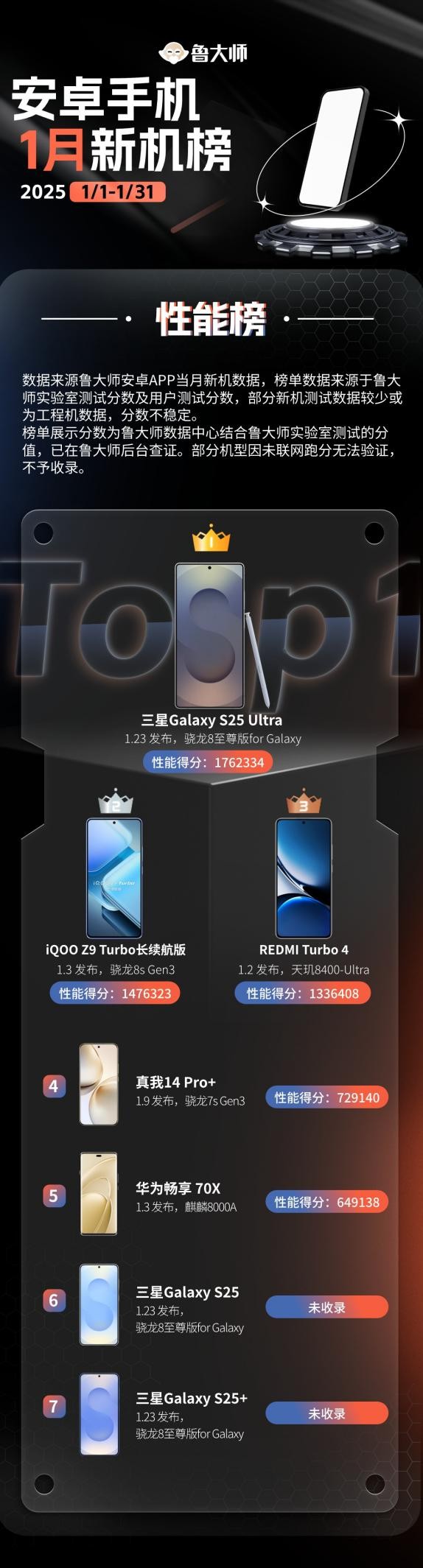 隨著新春假期的結束,魯大師2025年第一個月的新機月報也如約而至,不過開年第一個月的手機圈只好用“平淡如水”來形容,不僅沒有看到國產安卓Ultra超大杯的身影,就連往日火熱的中端機戰場也冷清許多。