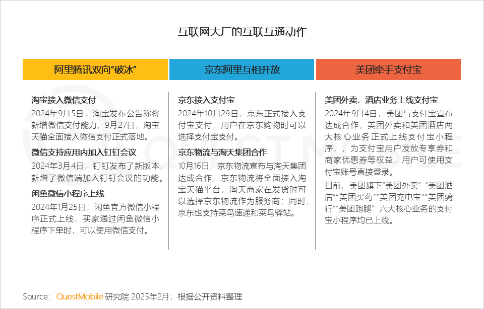 3、互聯網大廠開始主動“拆墻”,互相開放核心流量池,通過合作尋求新的增長點,同時給予用戶開放、靈活的使用體驗