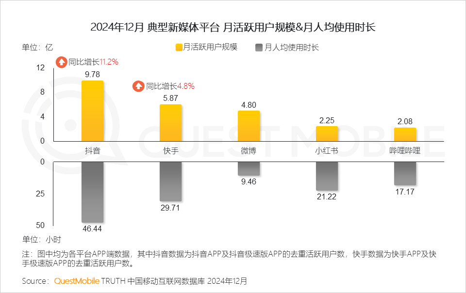 5、新媒體平臺已深度融入人們的日常生活,短視頻領域更是展現出強勁的增長勢頭,抖音與快手平臺的用戶規模持續攀升