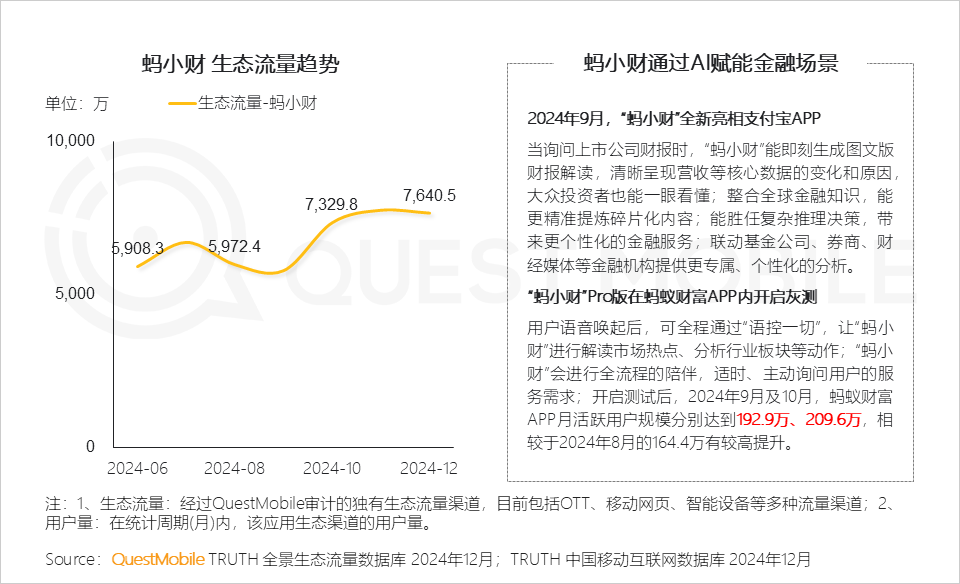 5、“螞小財”作為AI金融工具,降低金融服務的專業門檻,為用戶提供實時、個性化的理財服務,吸引更多用戶通過支付寶及螞蟻財富APP進行體驗