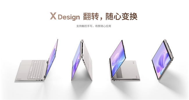 YOGA 360 14 AI元啟版以其獨特的360度翻轉特性而聞名,使其能夠在多種使用模式間自由切換,無論是傳統的筆記本模式、便捷的帳篷模式、舒適的站立模式還是便攜的平板模式,這一靈活設計滿足了用戶在不同使用場景下的多元需求。得益于這項創新,用戶可以根據具體情況選擇最適宜的操作方式,從而提升生產力和娛樂體驗。