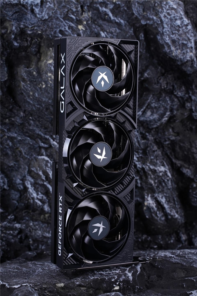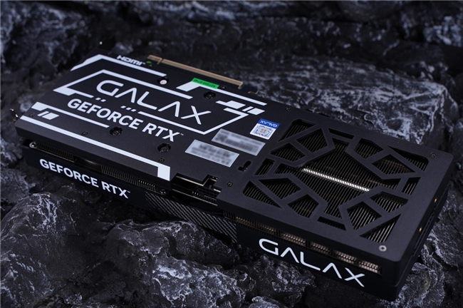 顯卡側(cè)面展示,影馳RTX 5070 FIRE是無ARGB燈效,側(cè)面由GeForce RTX與影馳LOGO GALAX組成,中間采用碳纖維紋路進(jìn)行分隔隔層。