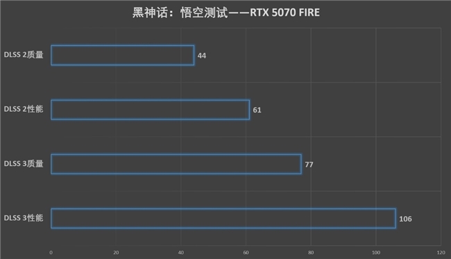 在黑神話:悟空的2K測試中(預(yù)設(shè)全高),RTX 5070 FIRE開啟DLSS 2性能就達(dá)到60幀以上。