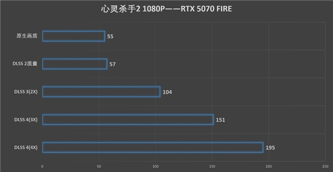 接下來是心靈殺手2,這款也是首批支持DLSS 4的游戲,在1080P分辨率,預(yù)設(shè)最高,開啟光線路徑追蹤的情況下,原生幀數(shù)僅為55幀,開啟DLSS 4后(持續(xù)開啟DLSS 2質(zhì)量),幀數(shù)便飆升至195幀,可以說DLSS 4就是玩家的福音。