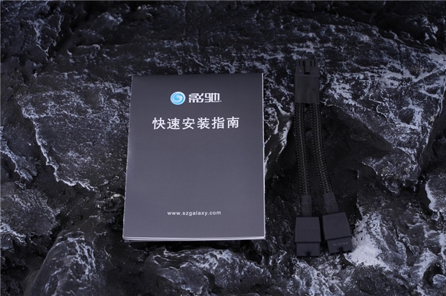顯卡盒內(nèi)附帶快速安裝指南以及雙8PIN的轉(zhuǎn)接線。