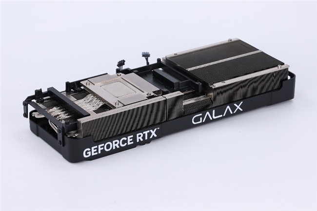 顯卡上蓋采用鋁合金一體壓鑄成型工藝,整體為全覆蓋式的金屬盔甲。這一設計不僅賦予顯卡極佳的質感和堅固度,還兼具了輔助散熱的作用。背板同樣為全金屬加固設計,防止PCB因顯卡自重而彎曲變形,并保護背面的元件不受外力損傷。本次測試采用的影馳 GeForce RTX 5070 金屬大師 OC,采用了簡約的撞色設計組成,輔以銀色邊緣點綴和CNC切割的亮面倒角,使顯卡既保留了金屬大師系列標志性的質感,又在細節處彰顯更為精致的感覺。這種設計語言低調而不失高級,相信能迎合很多玩家對美學和個性的追求。