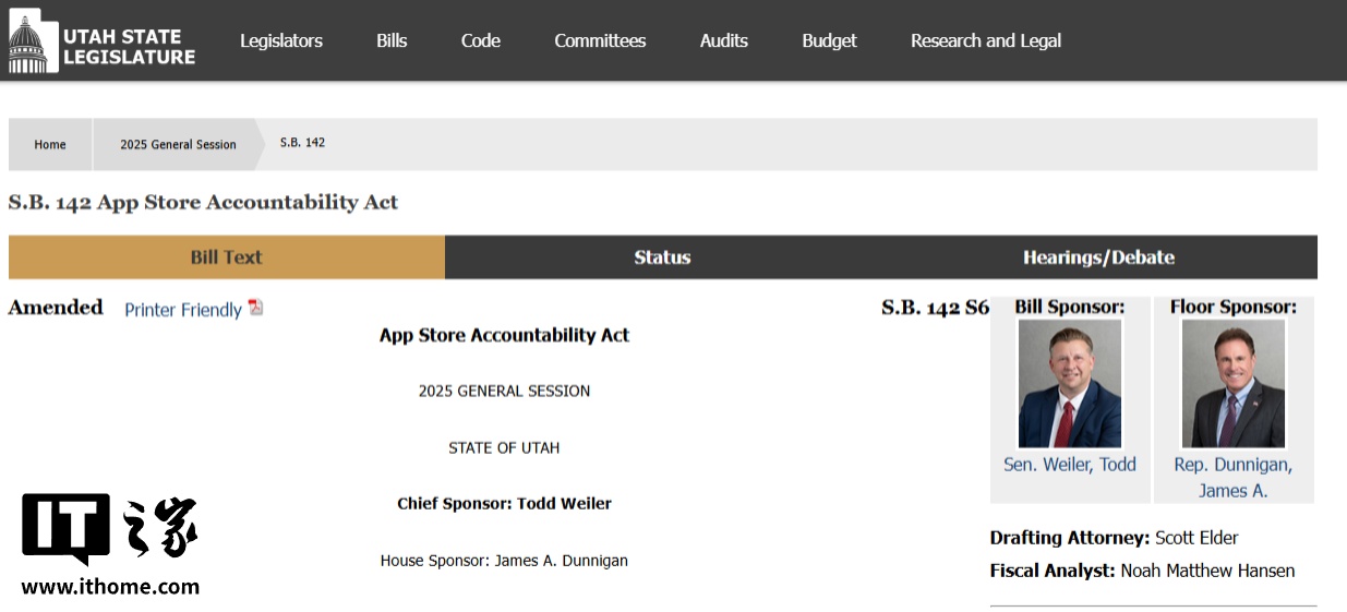 3 月 6 日消息,當地時間周三,美國猶他州通過全美首部關于應用商店的未成年網絡安全法案 ——SB 142《應用商店責任法案》 ,要求應用商店對用戶進行年齡驗證,并要求未成年人在下載應用前需獲得家長同意。Meta、Snap 和 X 都對此表示贊賞。