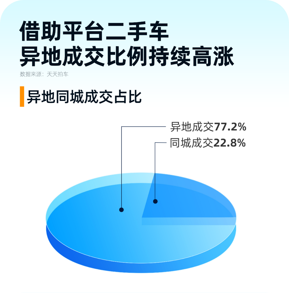 俗話說“人勤春來早”。節(jié)后二手車市場的交易主體呈現(xiàn)出意想不到的變化。天天拍車平臺數(shù)據(jù)顯示,2月天天拍車平臺異地成交比例高達(dá)77.2%。這一數(shù)據(jù)充分彰顯了二手車跨地域交易的活躍程度。對于二手車買家來說,跨地域交易不僅拓寬了車源選擇范圍,增加了淘到高性價比二手車的機(jī)會,還有助于滿足本地區(qū)消費(fèi)者個性化的二手車消費(fèi)需求。