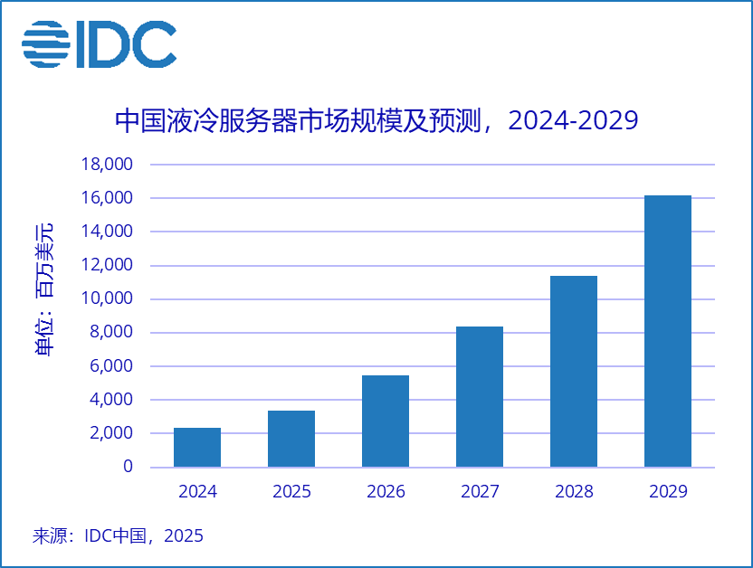 IDC預計,2024-2029年,中國液冷服務器市場年復合增長率將達到46.8%,2029年市場規(guī)模將達到162億美元。