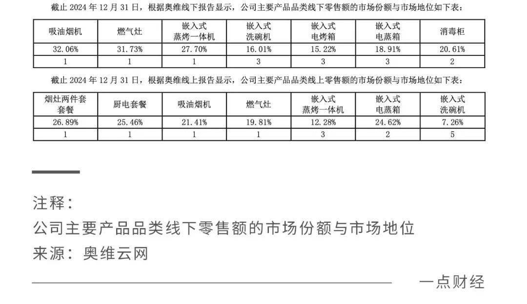 在核心品類上,老板電器展現出了高增長。奧維云網數據顯示,2024年其油煙機線下銷售額占比32.06%,線上占比21.41%,位居行業TOP1;燃氣灶線下銷售額占比31.73%,線上占比19.81%,位居行業TOP1;廚電套餐線上銷售額占比25.46%,位居行業TOP1。